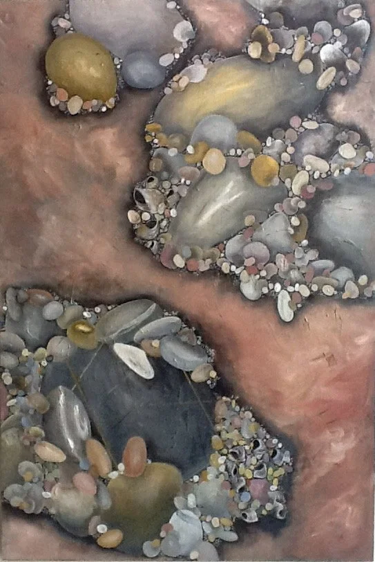 I grew up in Southern Maine where I spent summers combing the beaches for ‘treasures’ - a habit I continue today. My paintings reflect images from the coastline and gardens shaped by changing seasons, tides, light and shadows: washed-up buoys, rock ledges, pebbled beaches, seaweed, shells and gardens filled with flowers and vegetables.