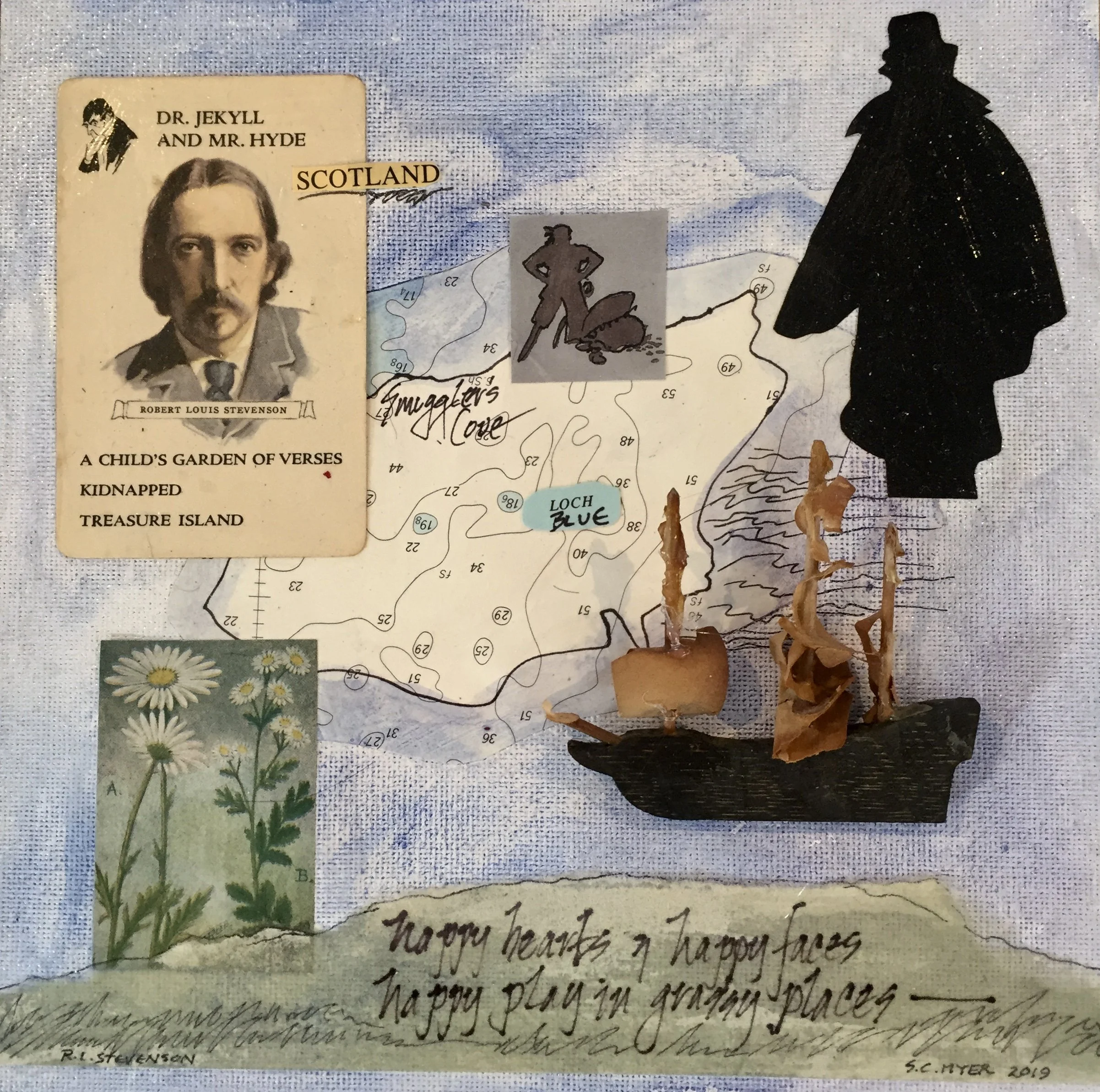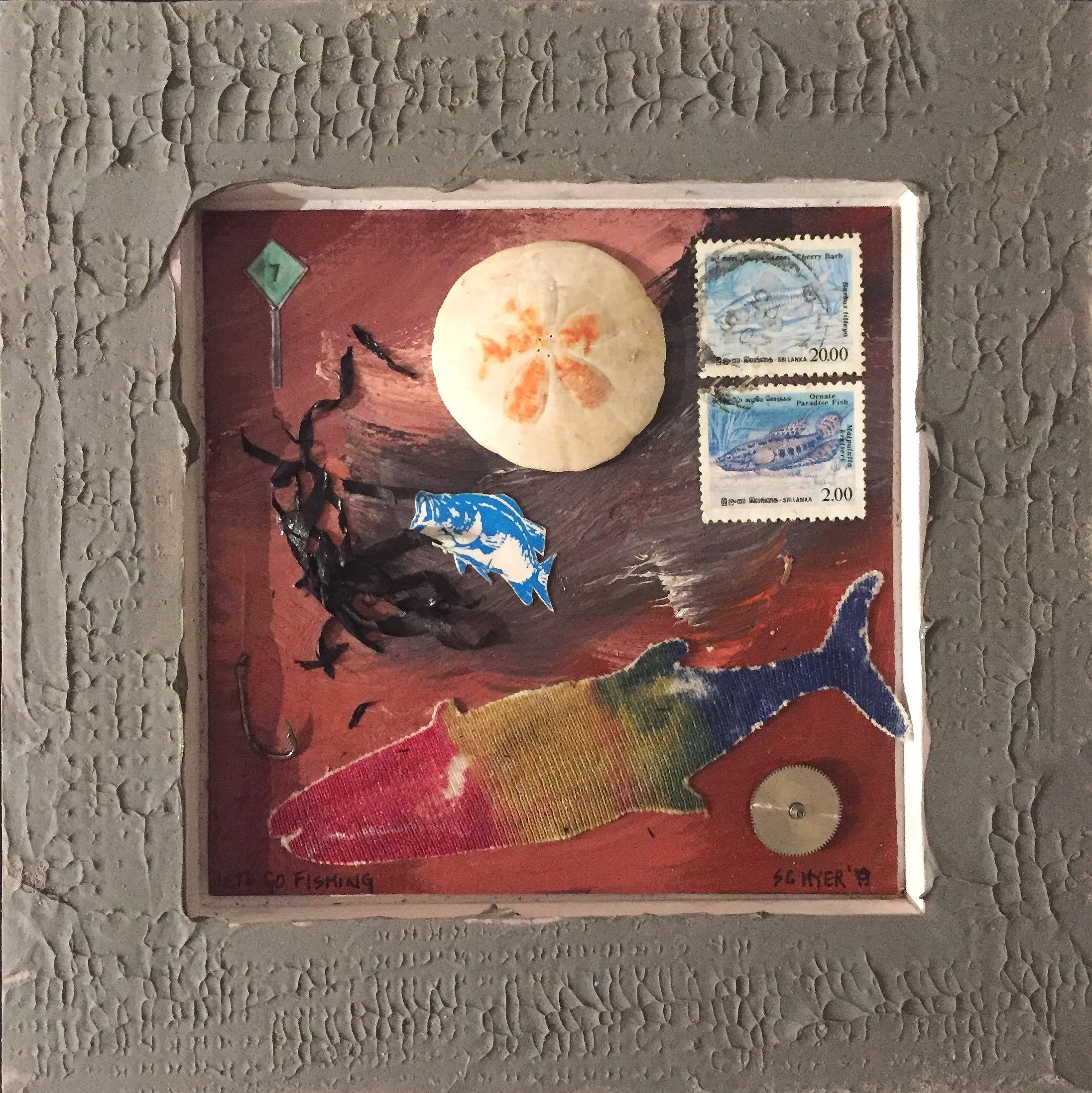 LUNCH BREAK MAINE ISLAND Mixed media collage 12”x12” $175
